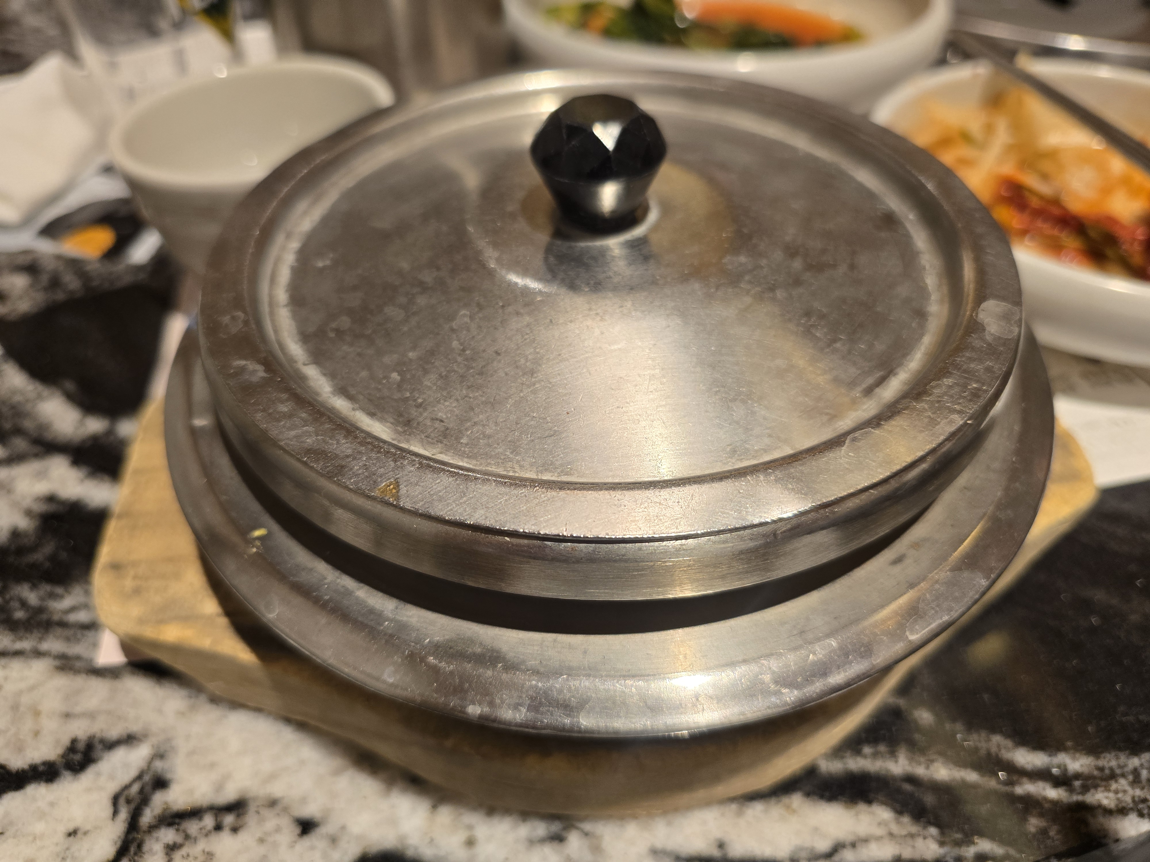 식사는 냉몀과 솥밥을 선택할 수 있는데 돌솥밥으로 주문하였습니다