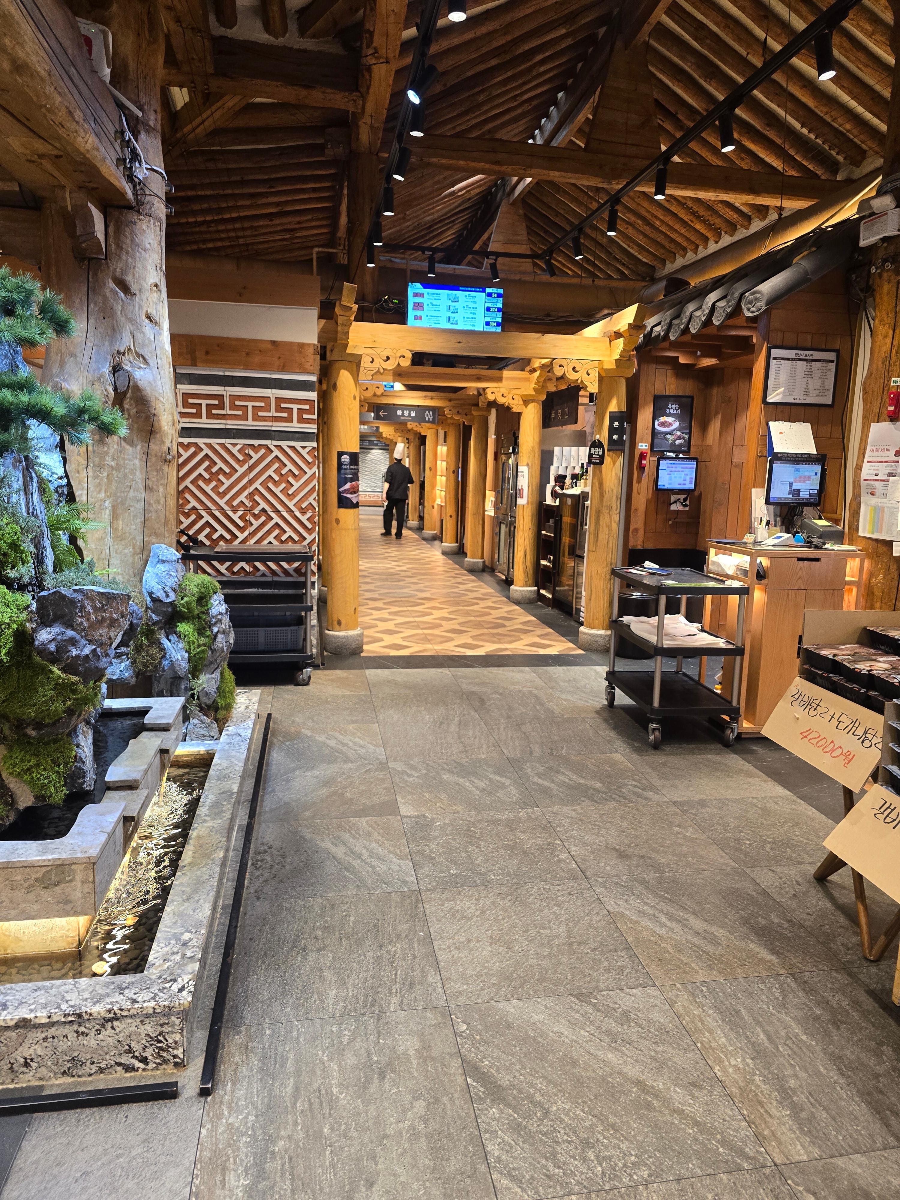 천정은 정말 한옥처럼 대즐보와 석가래가 운치를 더합니다
