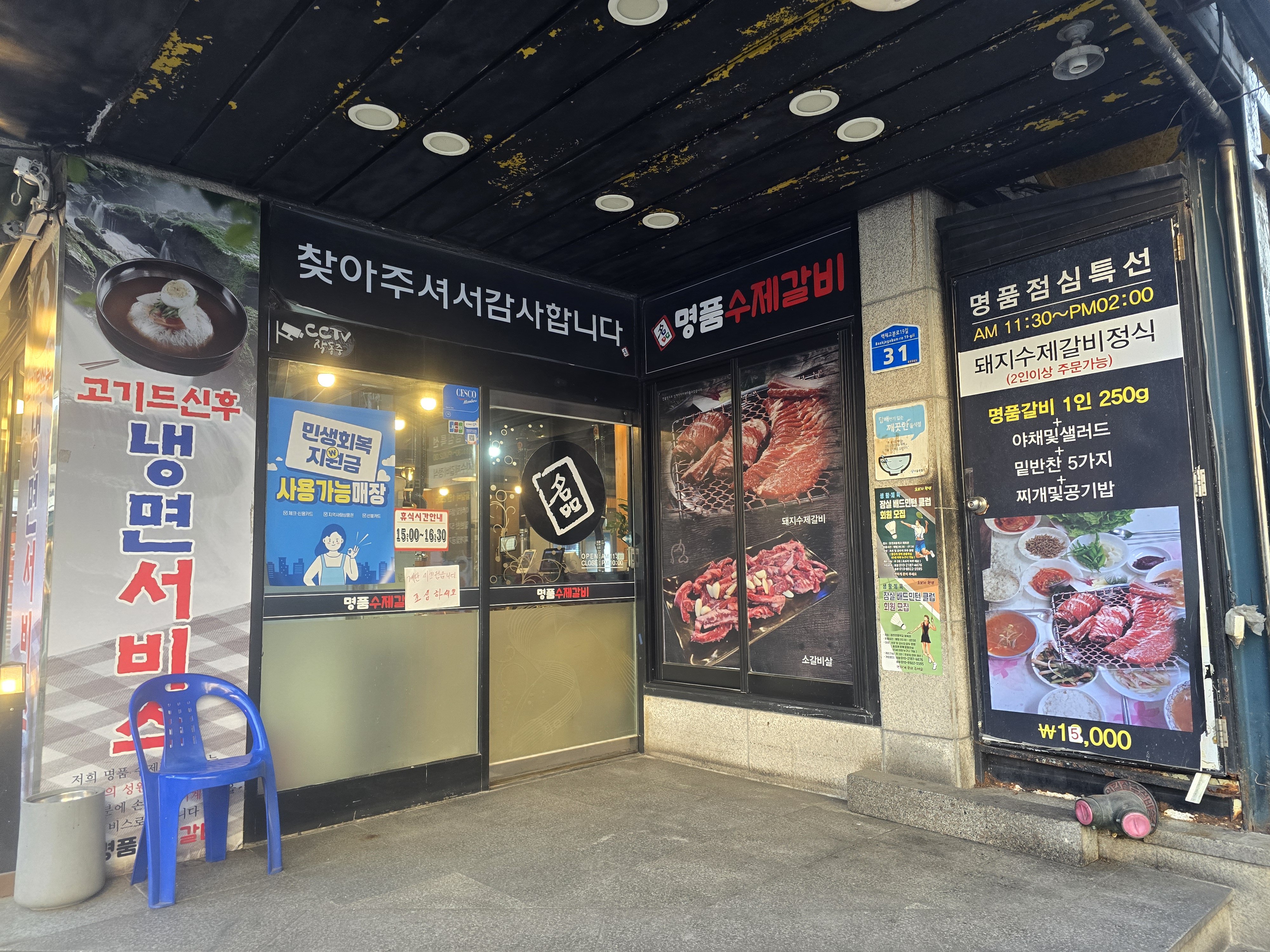 작년 가을 잠실새내역근처 돼지갈비 맛집인 명품수제갈비전문점에 오고 올해 처음으로 방문하였습니다 . 직원들이 친절하고 돼지갈비가 맛있으며 고기를 먹고나서 냉면서비스까지 가성비좋은 고깃집입니다 .