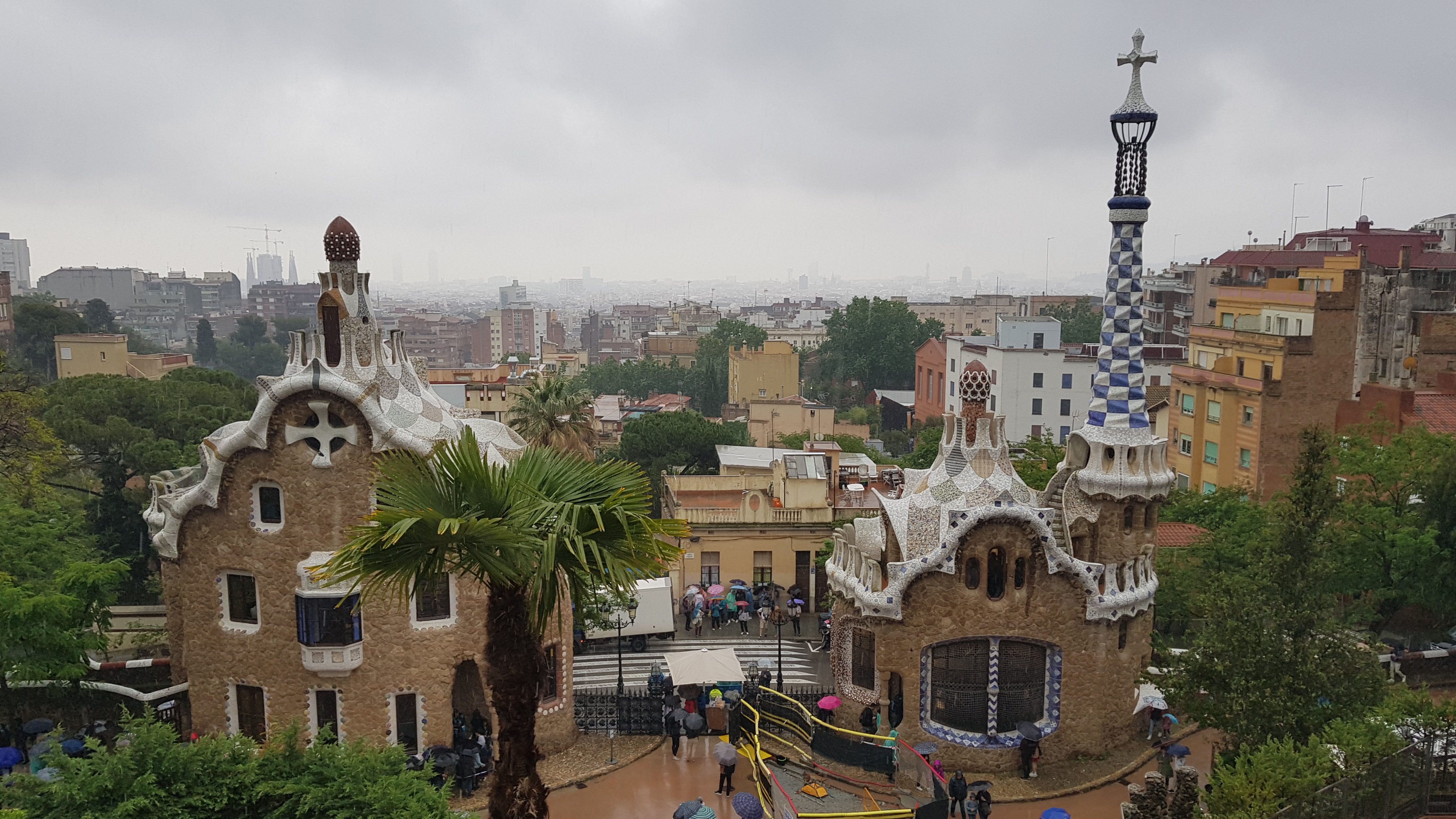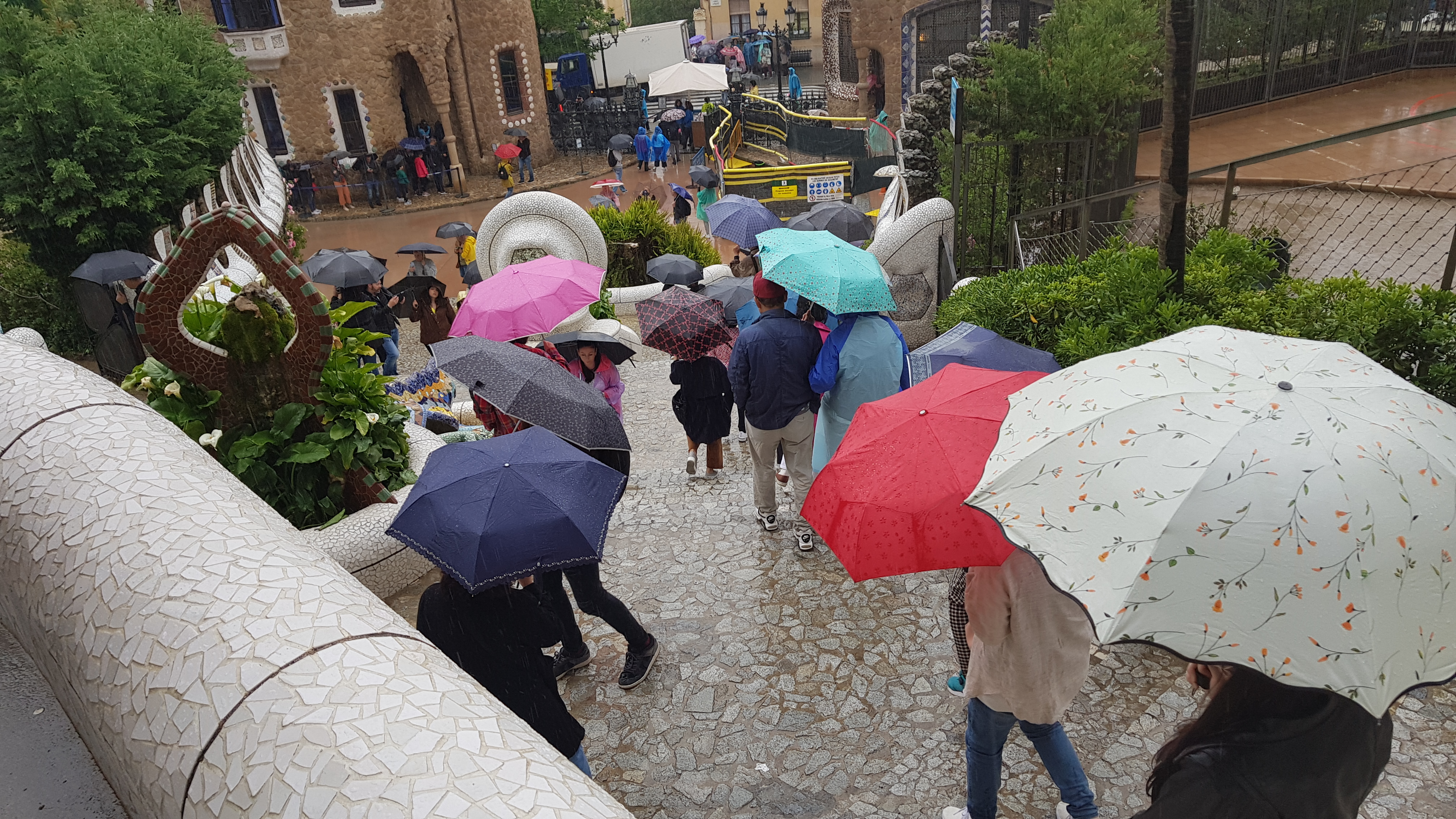 아침에 하늘을 보니 구름이 많고 날씨가 흐리더니 역시 비가 오기 사작합니다 . 호텔을 나와 버스를 타고 바르셀로나 시내로 이동하여 구엘공원으로 갑니다 . 스페인 첫 관광지는 가우디의 유명한 작품, 구엘공원입니다