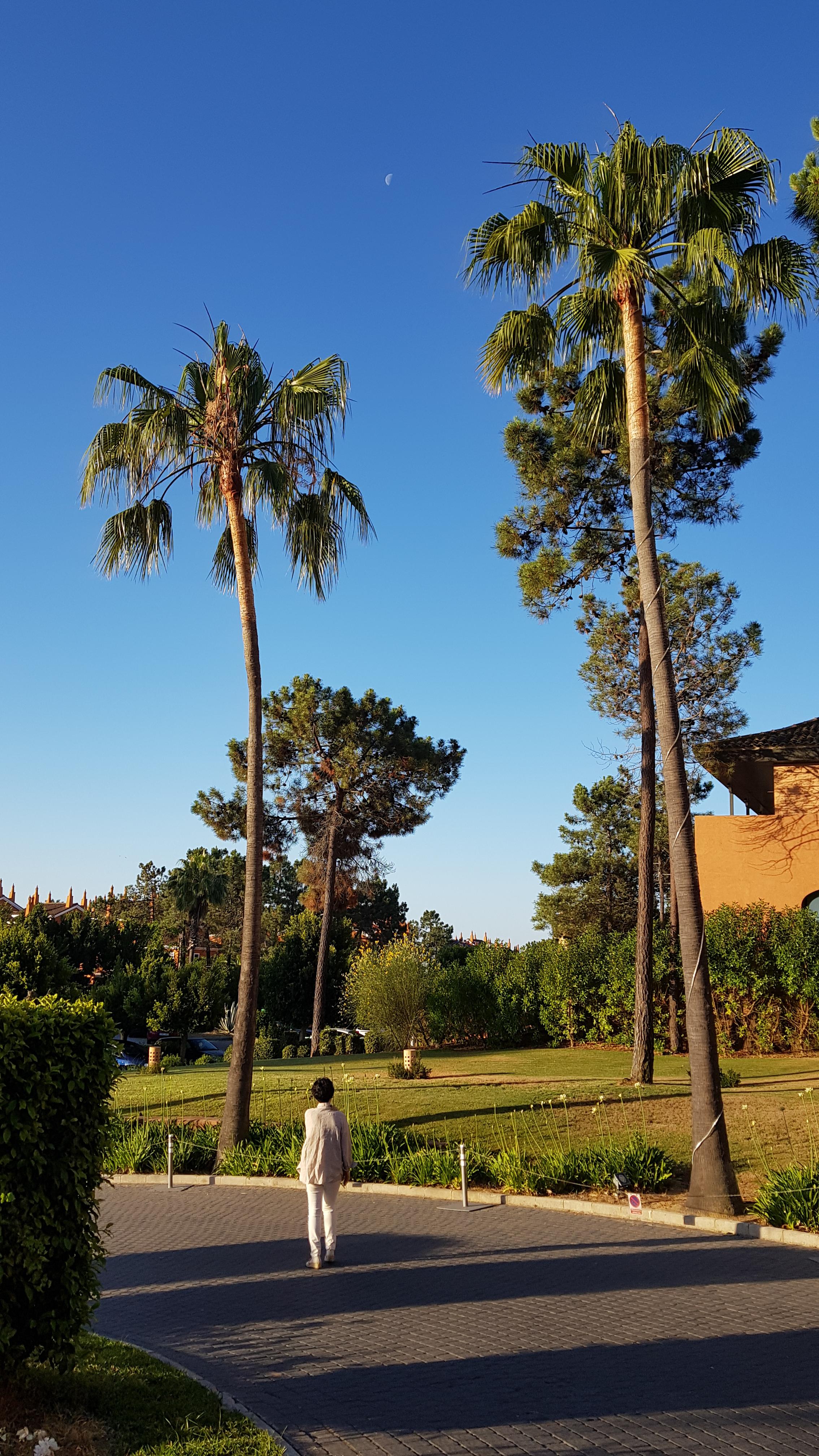 커다란 야자수가 인상적입니다. 하늘에는 달도 보였습니다