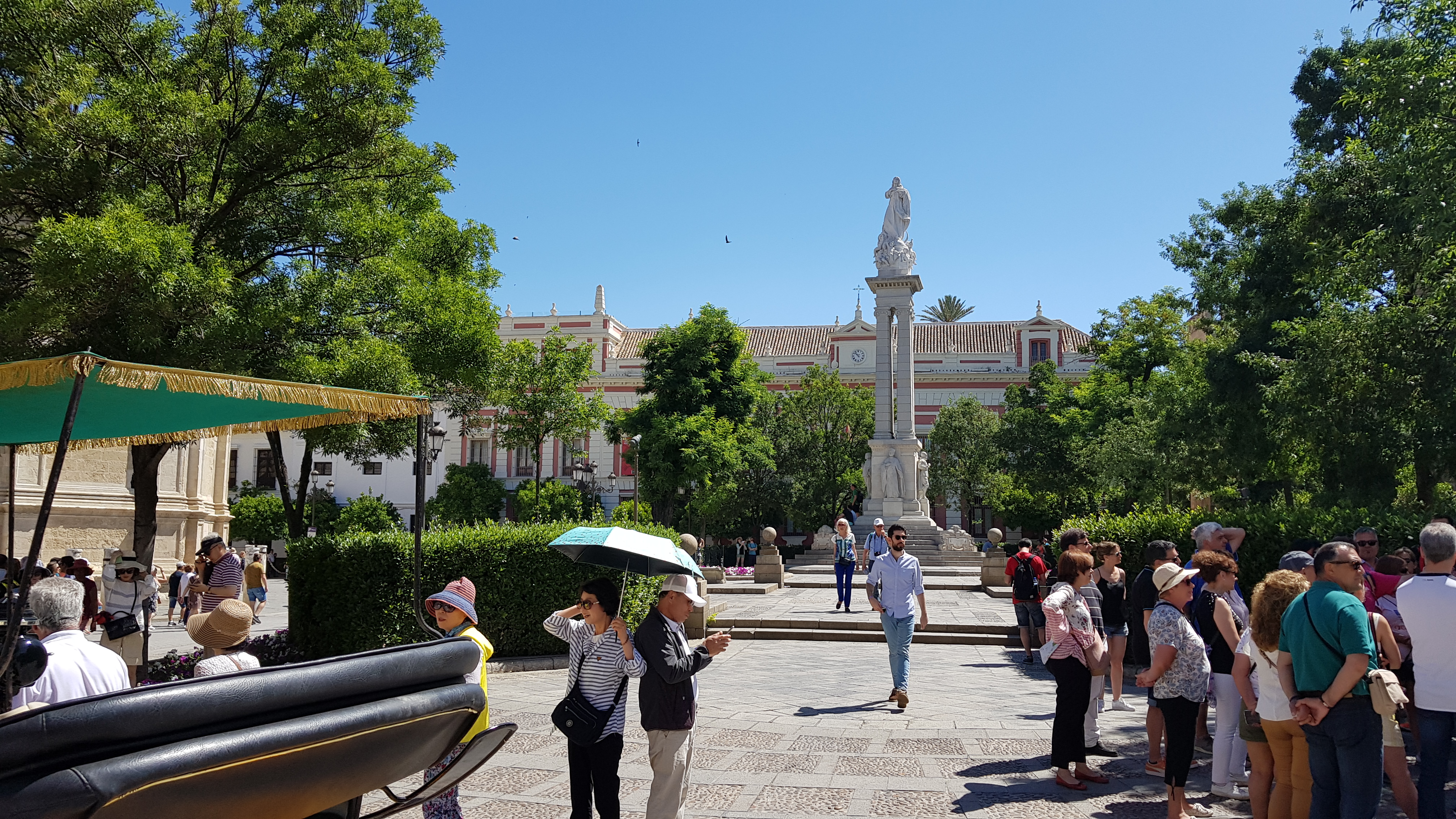 2019년 5월 26일 오전9시에 세비야 호텔을 체크아웃하고 스페인광장을 관광하였습니다 . 주변에 마차를 타고 돌아보는 관광객들이 많아 재미 있어 보였습니다. 그래서 우리일행도 마차관광옵션을 진행하기로 했습니다.
