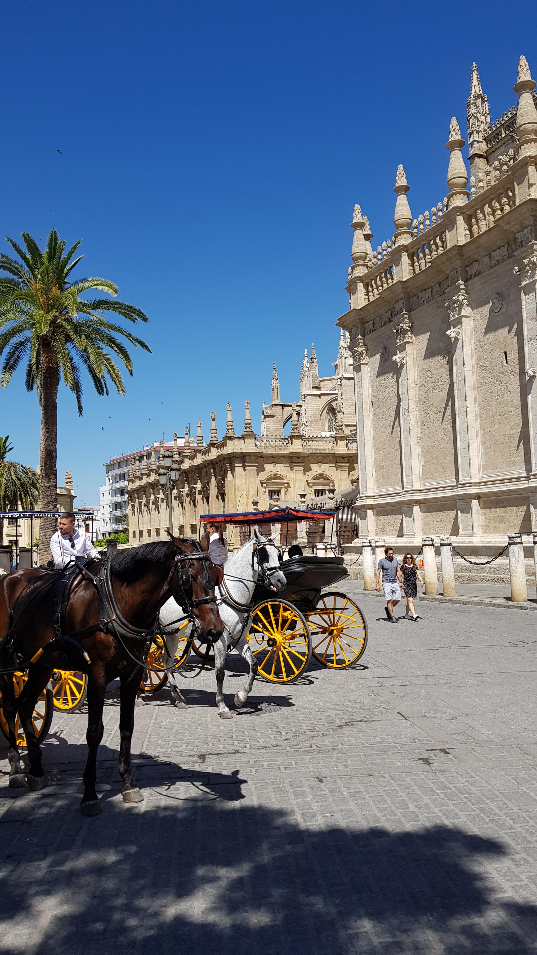마차를 타고 세비야대성당 앞까지 왓습니다 .