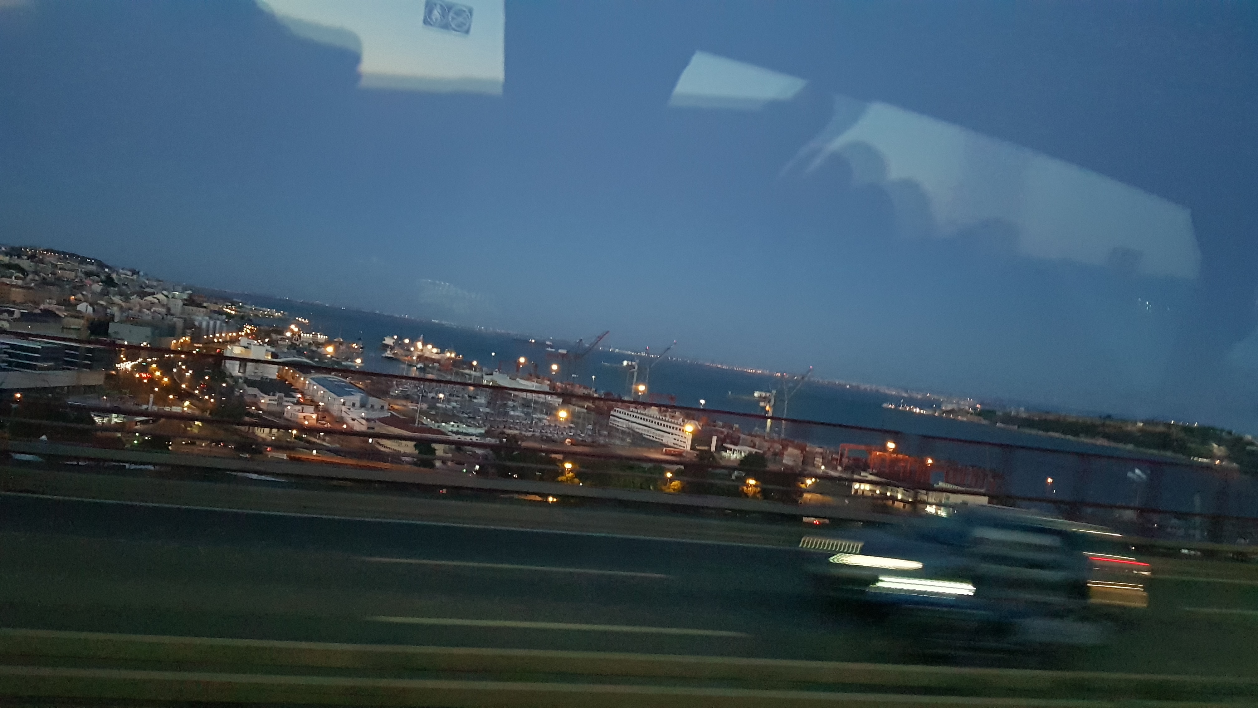저녁9시가 되어서야 다시 버스를 타고 숙소로 향했습니다 . 오늘 하루 강행군이었습니다 . 차창밖으로 리스본항구가 보입니다.