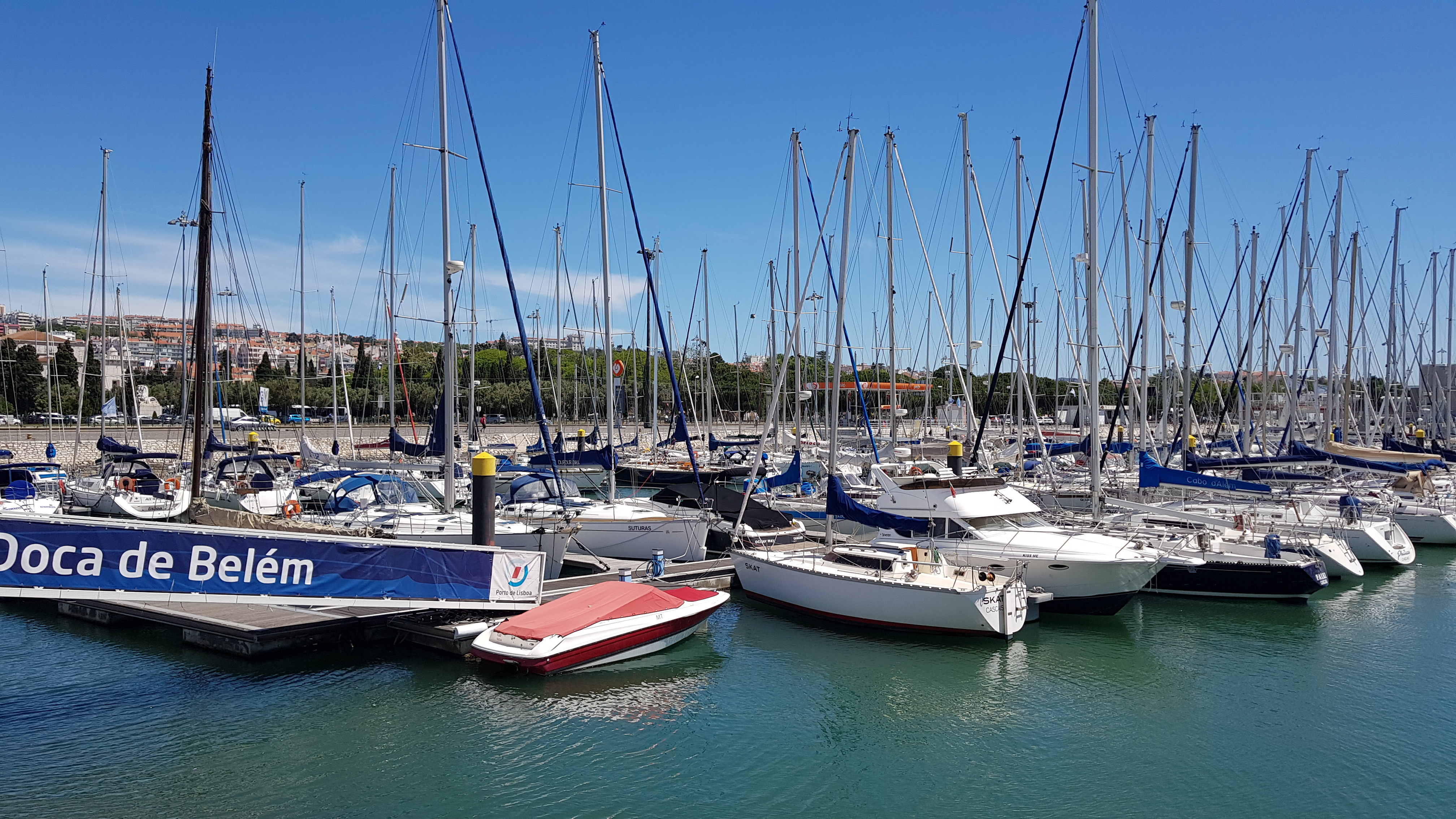 테주 강 (Tagus River) 에 많은 요트들이 정박해 있습니다