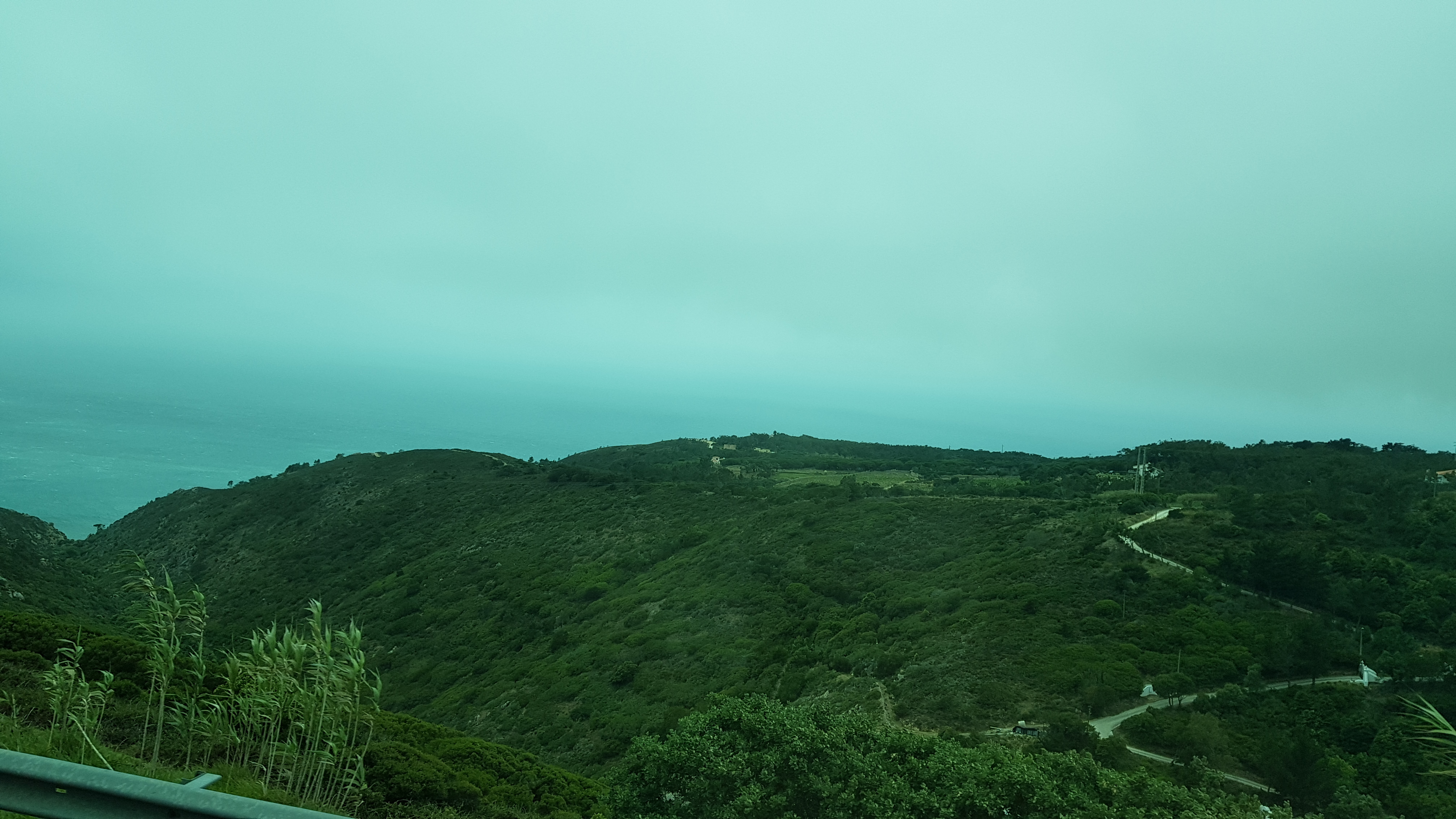 리스본에서 버스를 타고 40여분 달려오니 멀리 바다가 보입니다 .