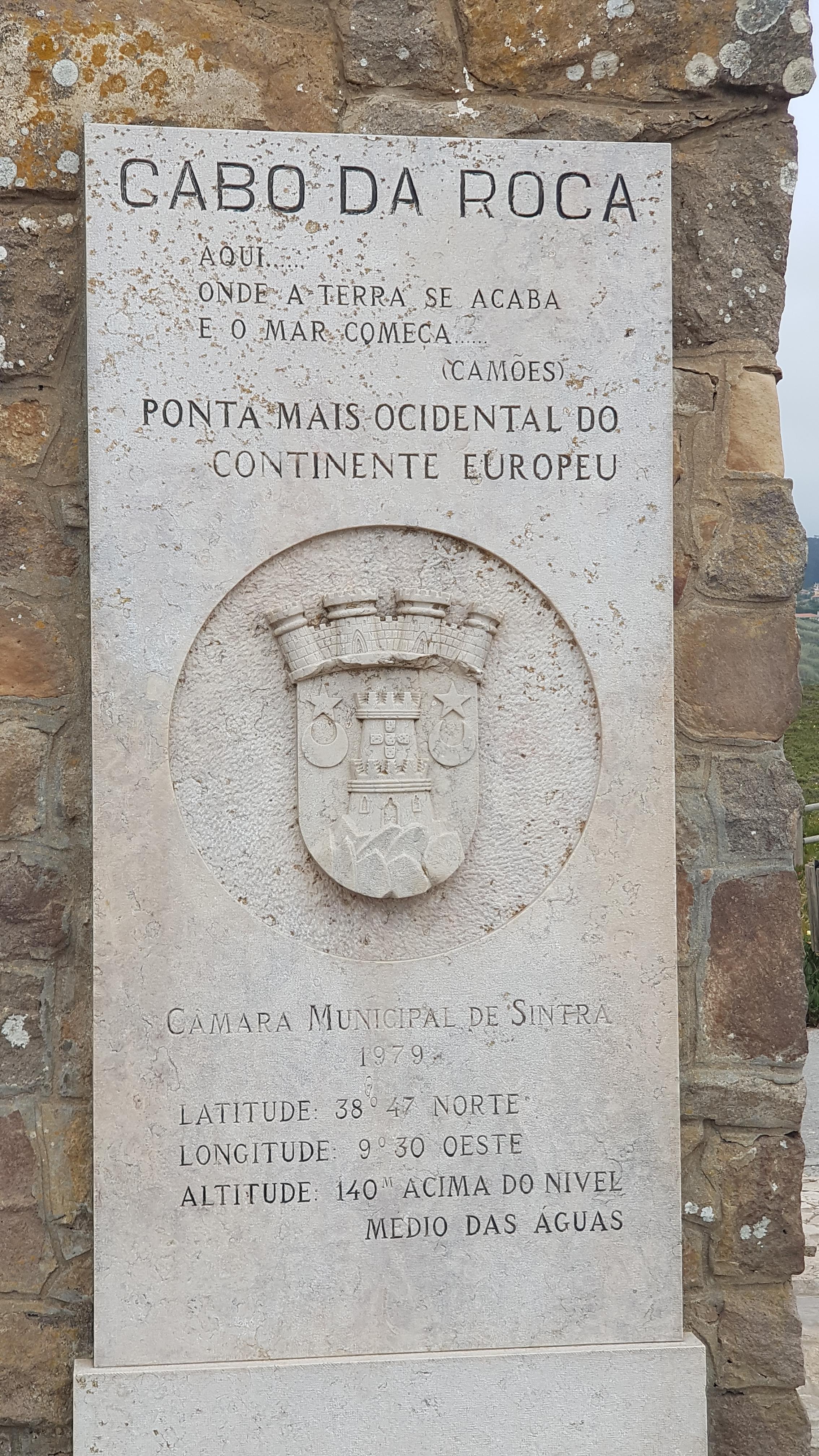 이곳은 유럽 대륙의 최서단으로 포르투갈의 시인 루이스 드 카몽이스가 남긴 시구가 써 있습니다 .