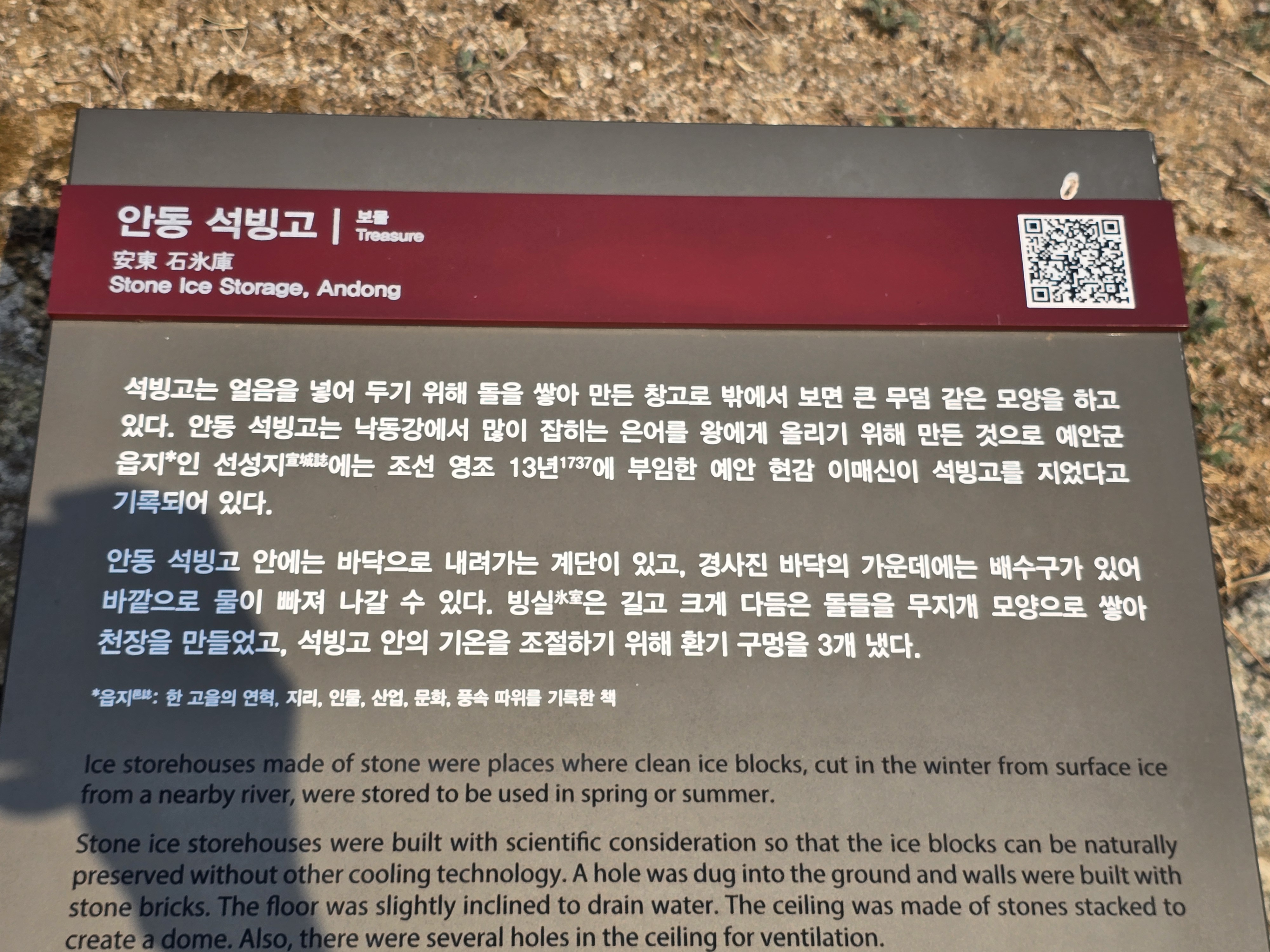 얼음을 넣어 보관하던 안동 석빙고 입니다 .