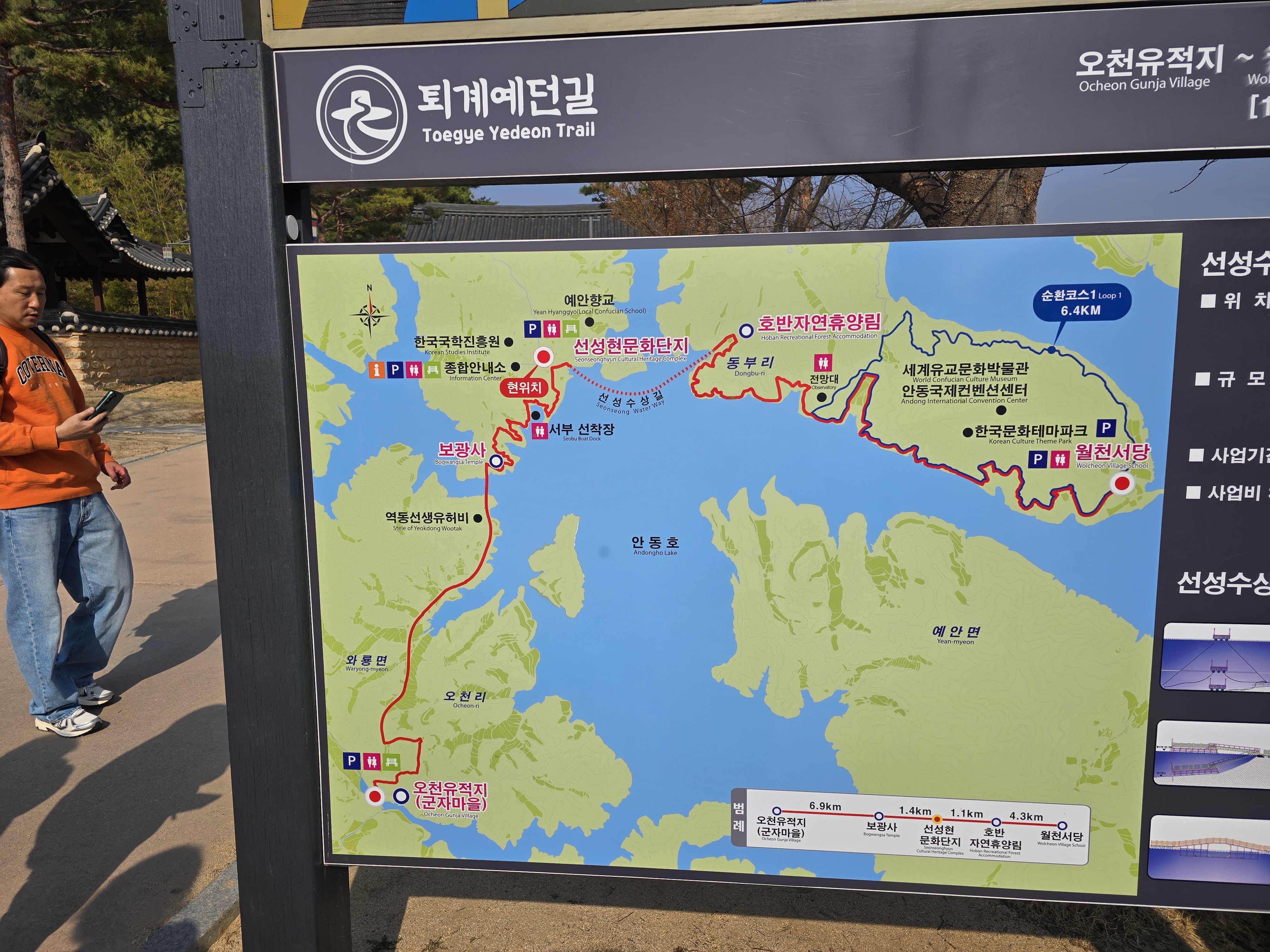 안동구시장에서 안동찜닭으로 맛있게 점심을 먹고 다시 버스를 탑승하여 오후관광코스를 진행합니다. 오후에는 안동 선성현 문화단지내에 있는 선성수상길을 걷고 예끼마을 을 둘러보는 코스입니다 . 안동호에 수몰된 마을을 기념하는 곳까지 물위 데크길을 걸어서 다녀 옵니다 .