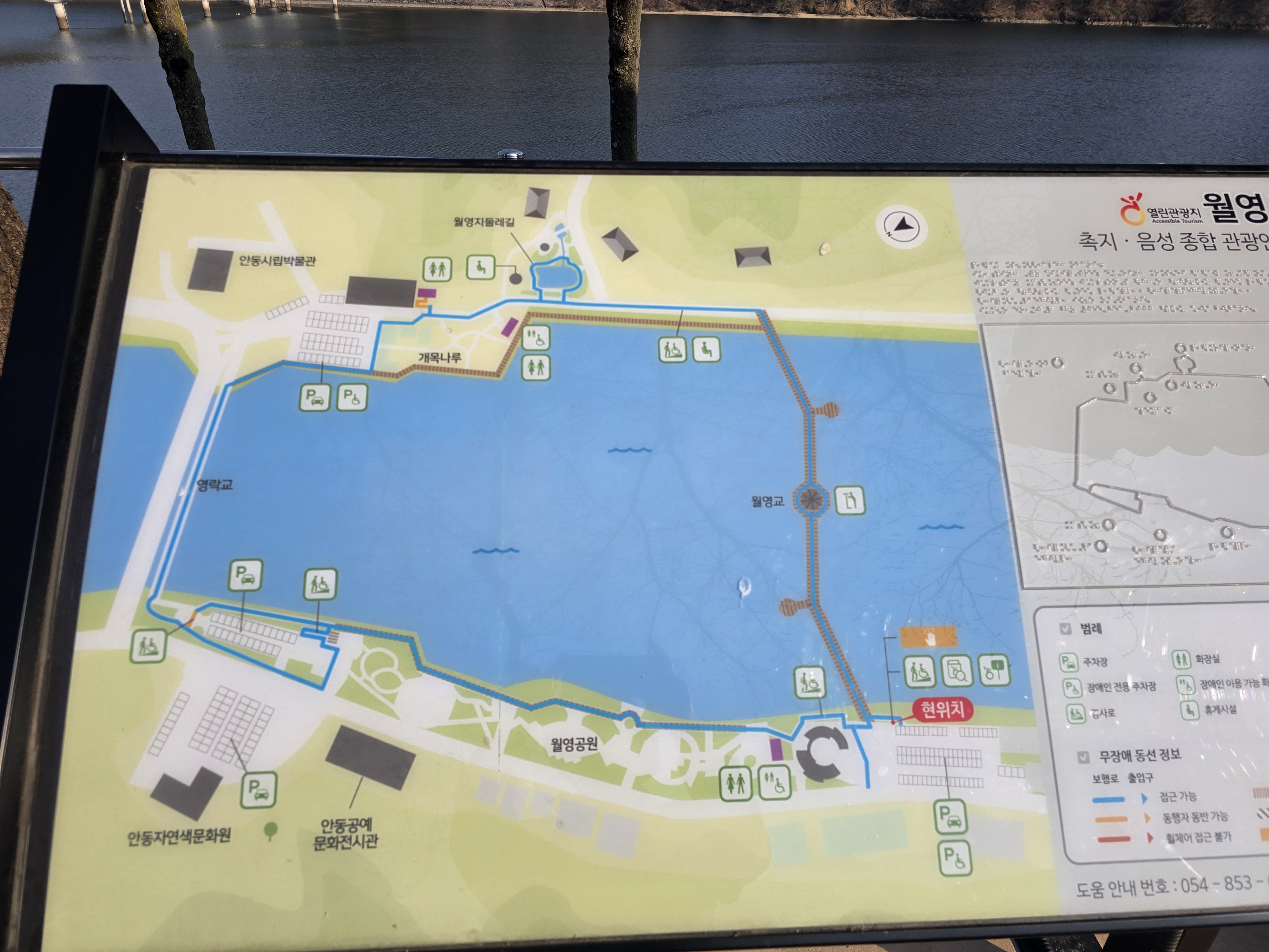 다시 버스를 타고 안동호를 지나 안동여행의 마지막 코스인 월영교로 갑니다