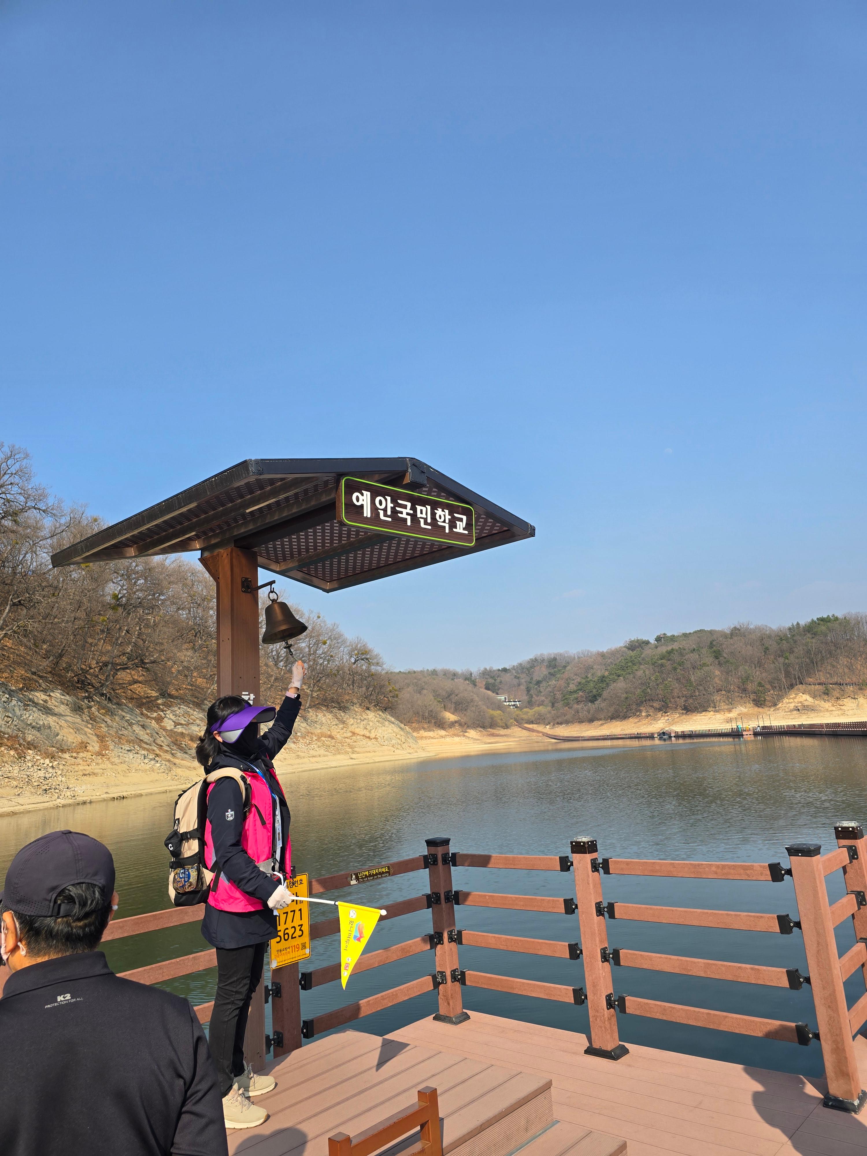 수상길 중간에 안동호에 수몰된 예안국민학교의 위치에 설치된 학교종을 해설사님이 치며 설명을 해주엇습니다