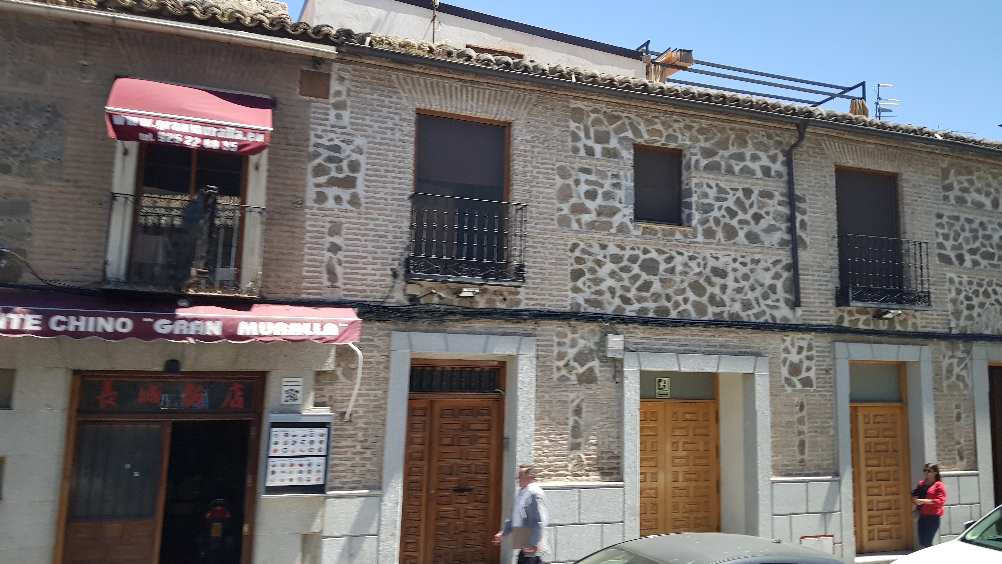 사진에서 보이는독특한 건물양식은 톨레도 구시가지의 좁은 골목길에서 흔히 볼 수 있는 오래된 건축물들의 특징입니다.