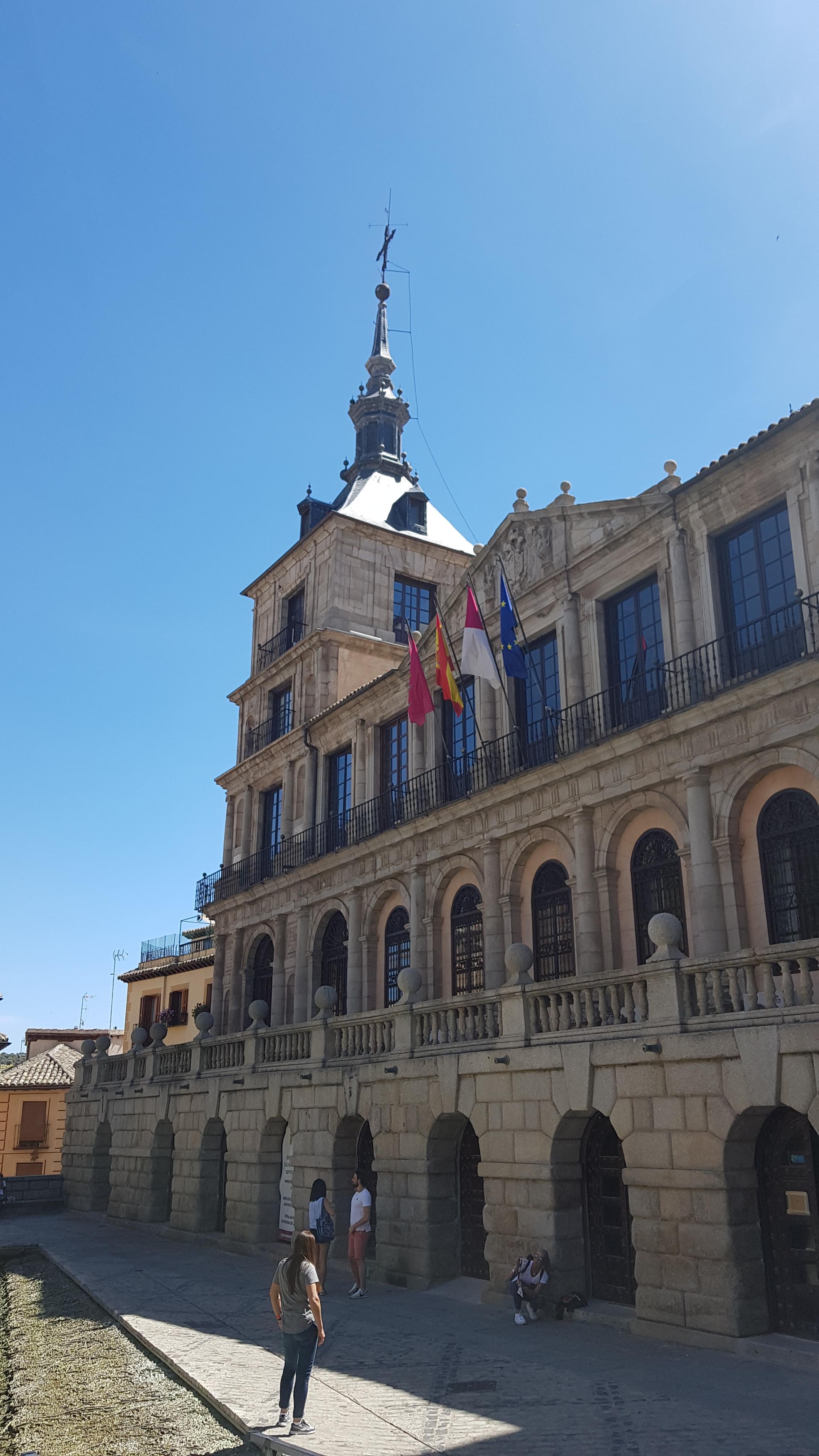 톨레도 시청의 문양이 그려진 대형 현수막이 걸려 있습니다