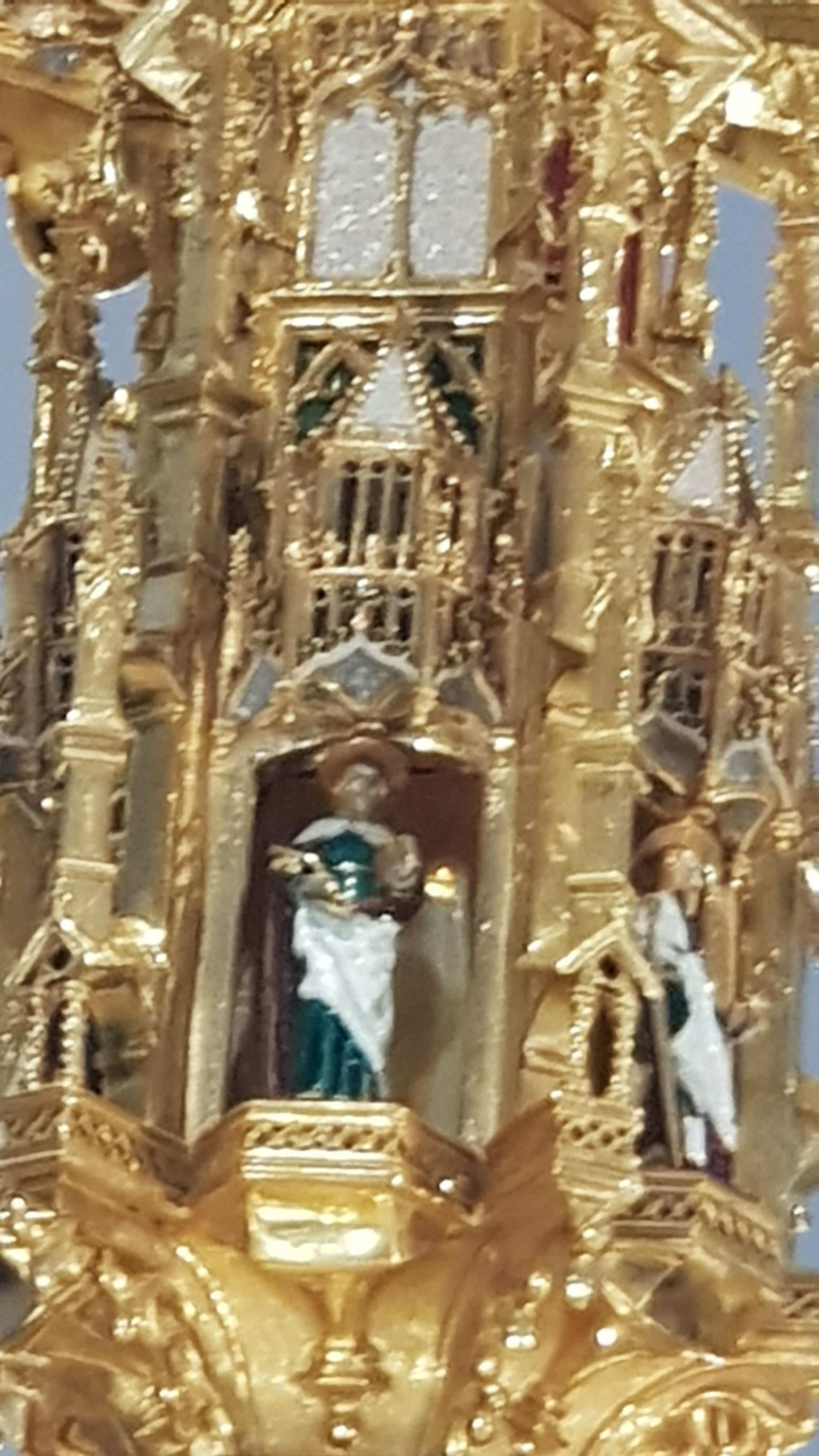 고딕양식의 정교한 타워형태로 5,600여개의 부품과 12,500여개의 나사로 조립되었습니다 . 중앙에는 성체를 모시는 공간이 있으며 꼭대기에는 순금 십자가가 놓여 잇습니다 .