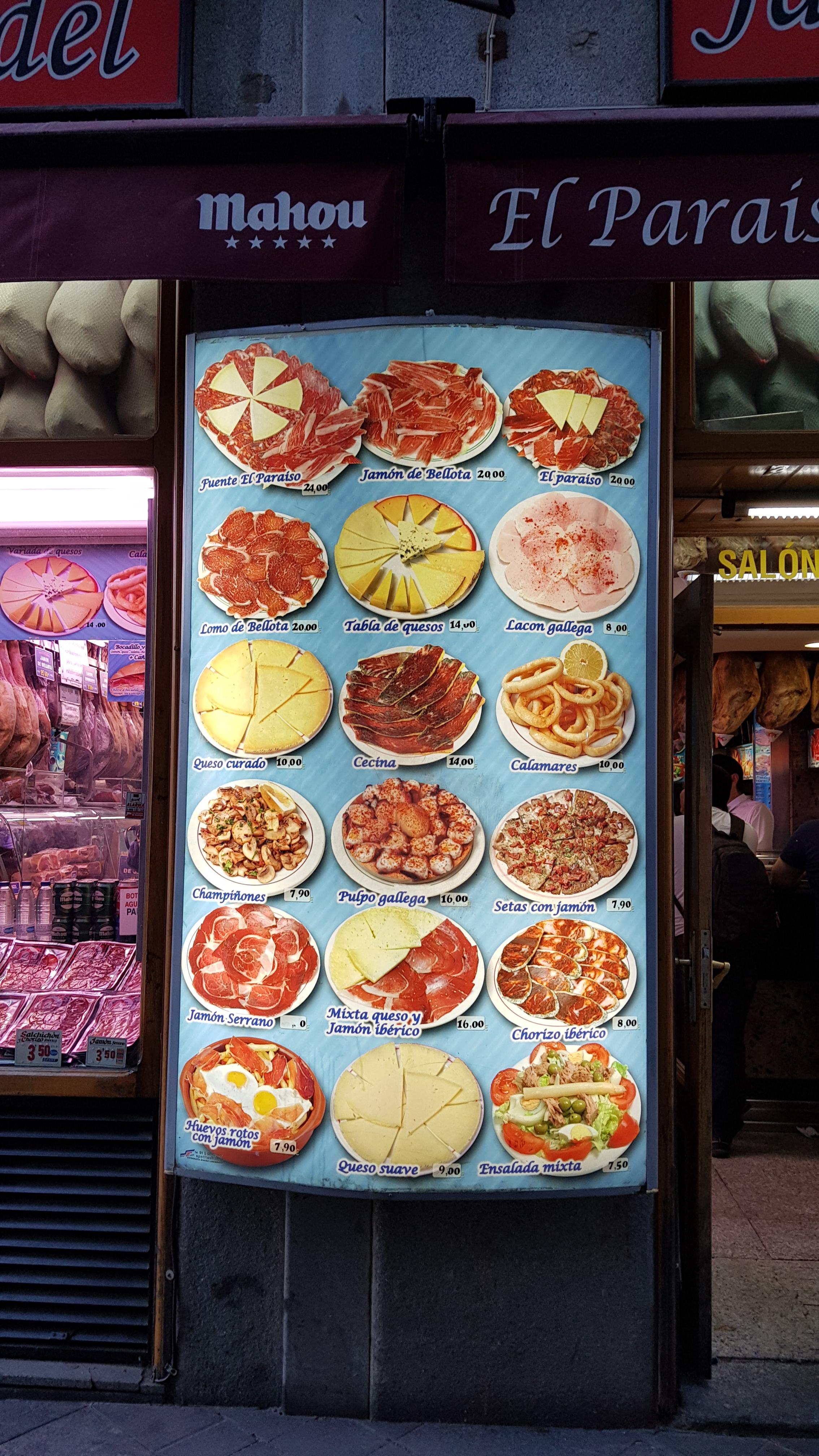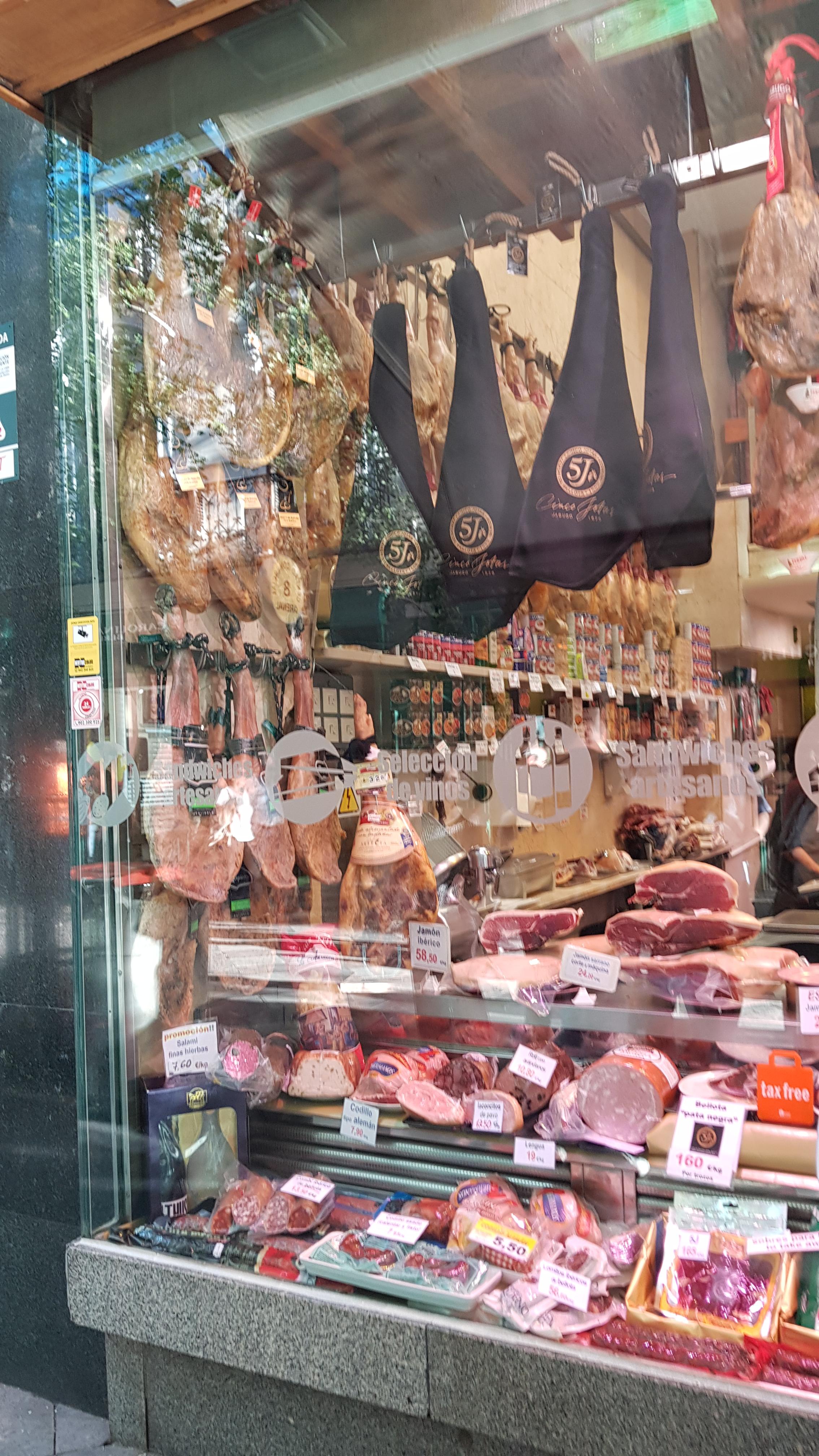 하몽과 치즈가 가득한 레스토랑 매장을 바라보며 한국과 다르다고 느꼇습니다 . 역시 스페인입니다.