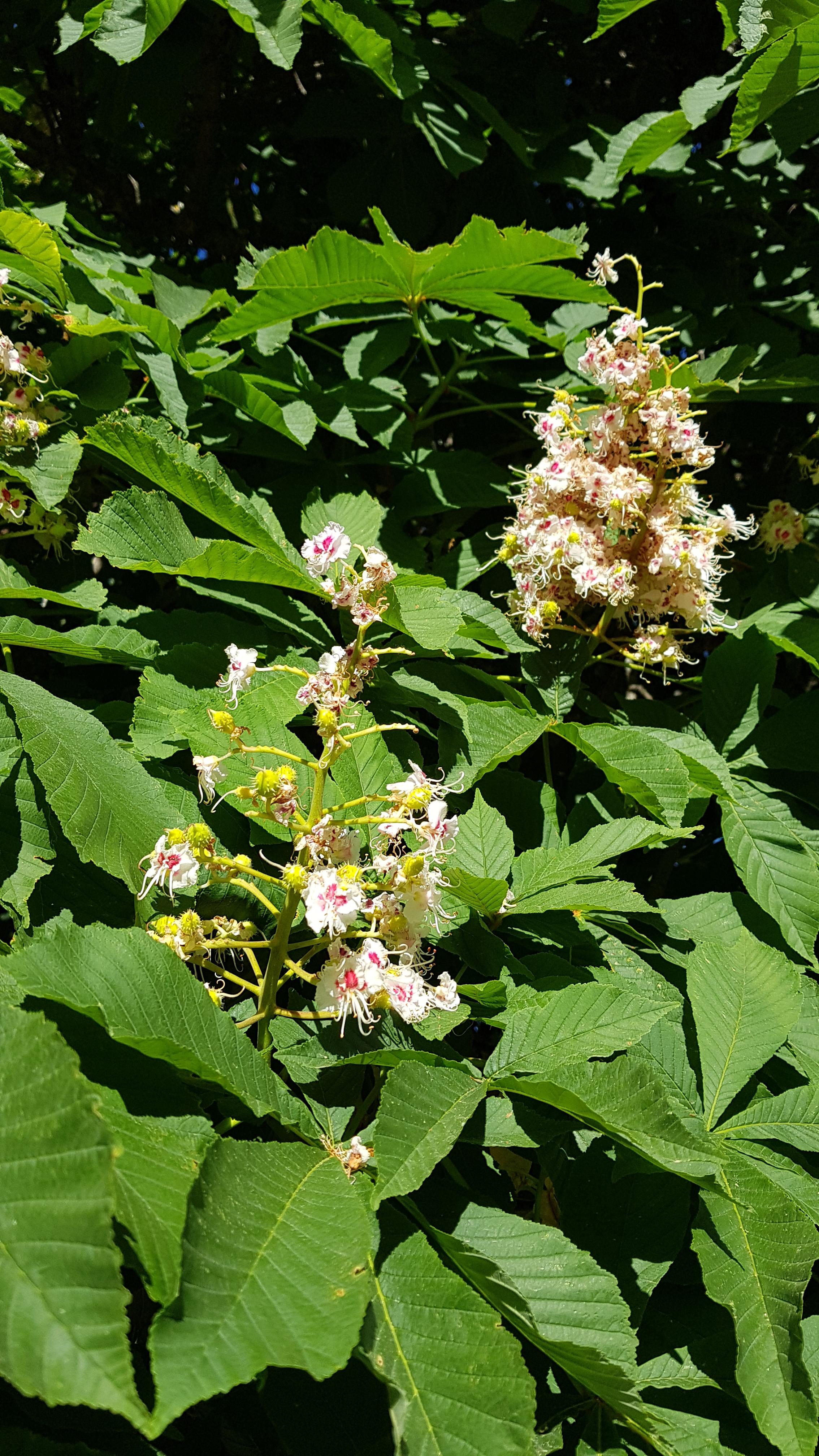 꽃은 5-6월에 흰색 또는 붉은 빛을 띤 흰색으로 원뿔모양으로 핍니다 . 그 말로만 듣던 마로니에 꽃을 보는 행운을 얻었습니다.
